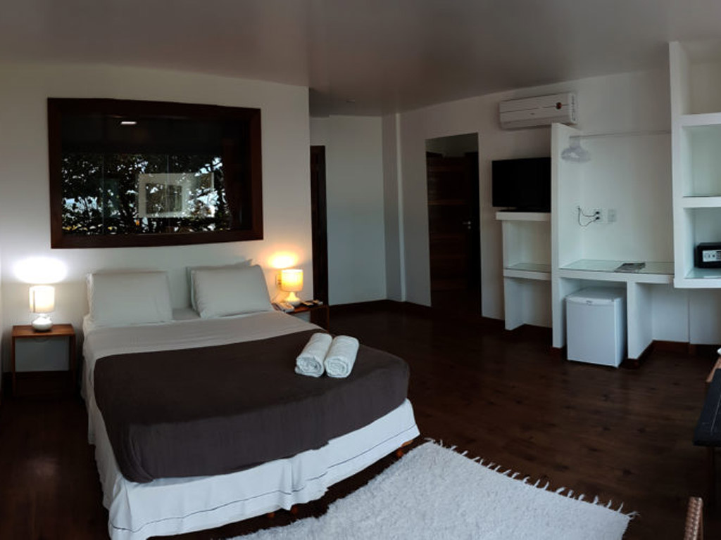 ACOMODAÇÕES - Todos os aptos possuem ar condicionado, Tv satélite, frigobar, secador de cabelos, cama de casal, amenities (shampoo, condicionador e sabonete). Café da manhã incluso.