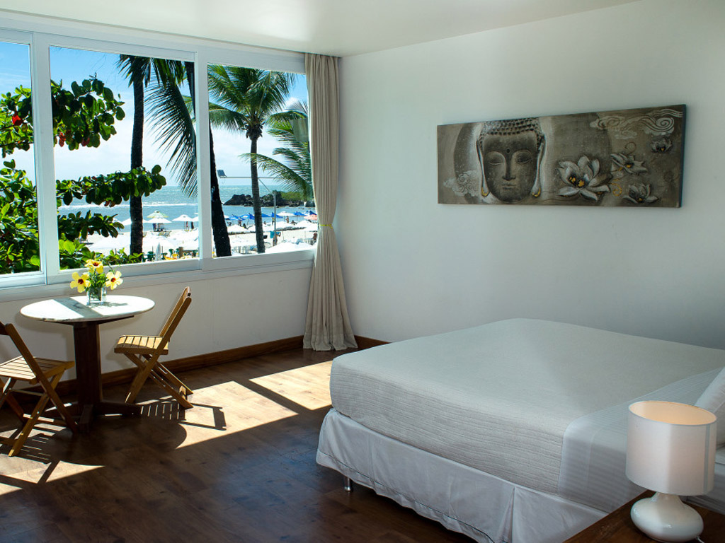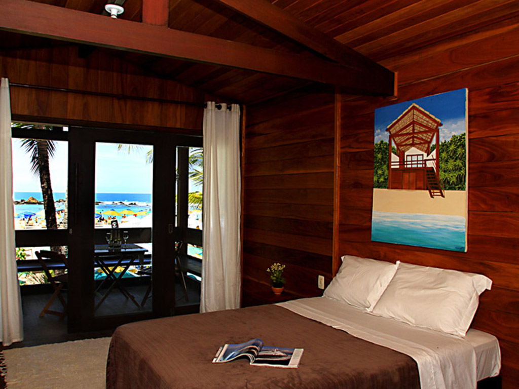 - Máster Frente Mar - situado no 1º piso, possui cama de casal Queen Size, isolamento acústico, Wi-Fi, cofre, mesa com cadeiras;